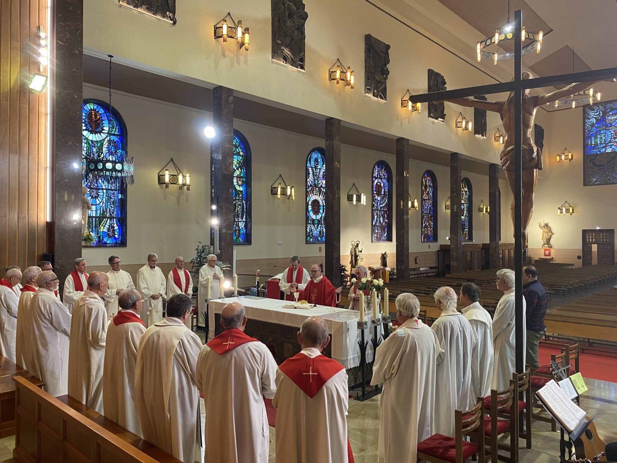 El presbiterio del Santuario de María Auxiliadora de Atocha fue el espacio escogido para concluir el encuentro con la celebración de la Eucaristía. En su homilía, el Inspector, Fernando García, animó a los Párrocos a vivir con intensidad y profundidad su vida de oración, para poder encontrarse con el Señor Jesús y ser su fiel reflejo en medio de sus comunidades parroquiales.