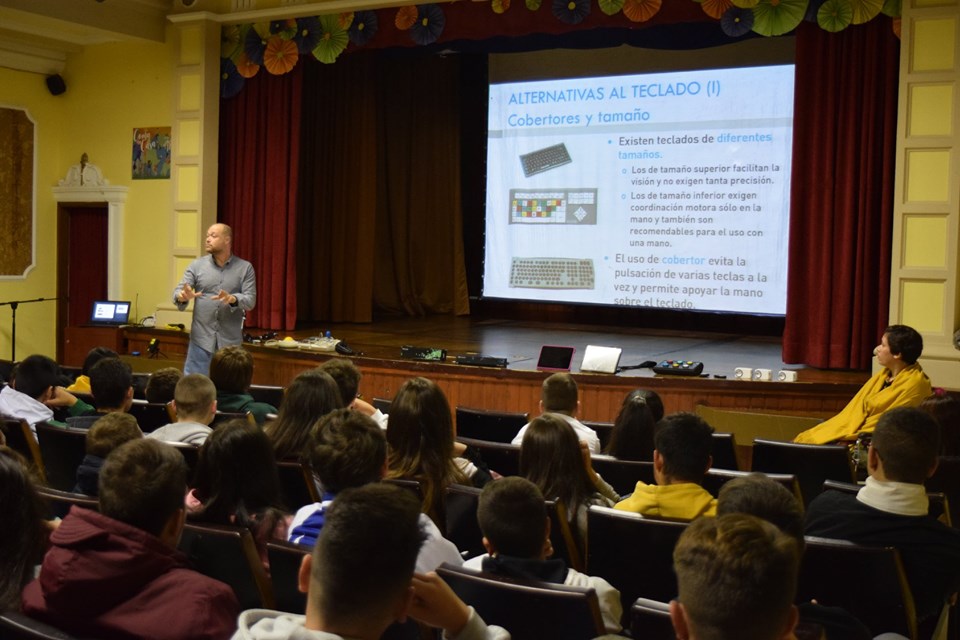 Se trató de la exposición de Gil Barrero, Ingeniero Técnico en Informática por la Universidad de Oviedo, especialista en informática adaptada y en tecnología de apoyo y asesor delegado de BJ Adaptaciones para Asturias, Cantabria, Castilla y León Norte (Burgos, León, Palencia, Zamora), Galicia, La Rioja, Navarra y País Vasco.
