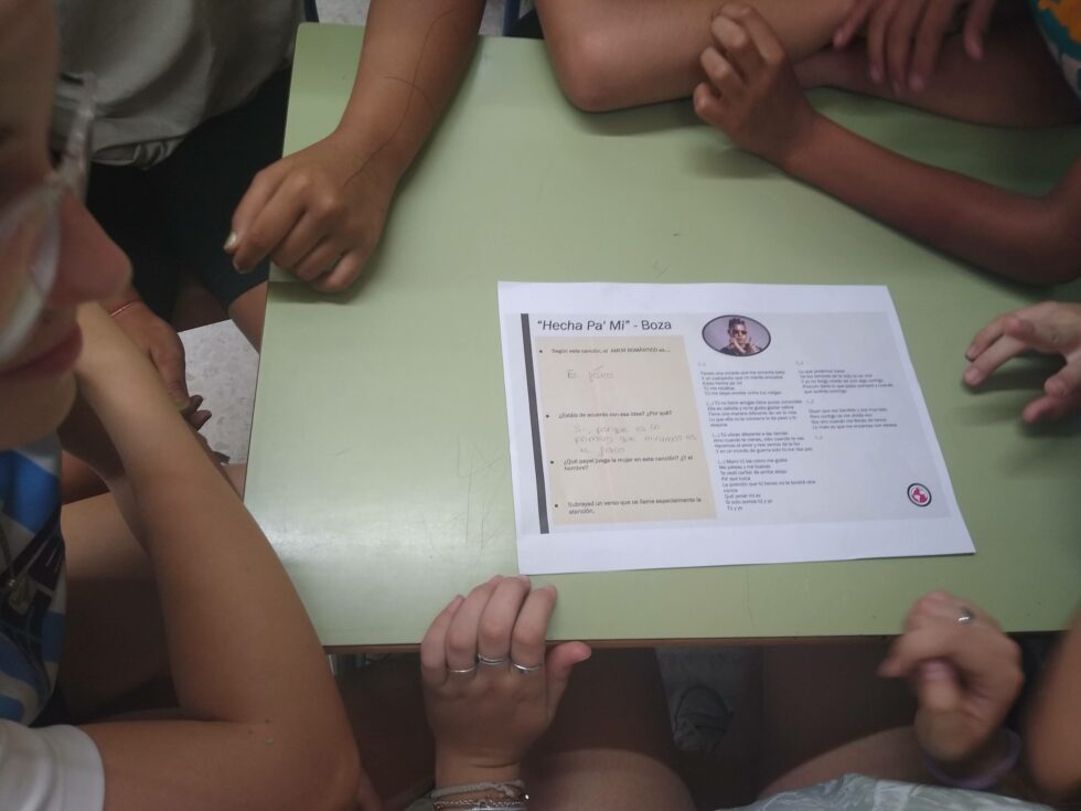 A través de las actividades se ha construido con el alumnado un discurso alternativo a éste: en el que se habla del amor como una relación basada en el respeto, la confianza y el cuidado mutuo desde un plano de igualdad, como se reflejó en los nuevos versos que ellos y ellas crearon para cambiar las canciones analizadas, a las que añadieron mensajes como «los celos no son amor», «soy una persona, no pertenezco a nadie» o «el amor es como la luna, brillante cuando es sano y sin nubes machistas».