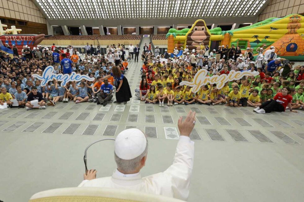 El Papa León XIV ha pasado la mañana del 3 de julio, en compañía de los más pequeños: primero, con unos 300 niños y jóvenes procedentes de Ucrania y acogidos durante el verano por la Cáritas italiana; después, con los 310 niños y jóvenes que participan en el Centro de verano para niños en el Vaticano, “Estate Ragazzi in Vaticano”, en el Aula Pablo VI, organizado por los salesianos del Vaticano. El Pontífice se reunió con ellos poco antes de las 12 del mediodía, al final de las audiencias.