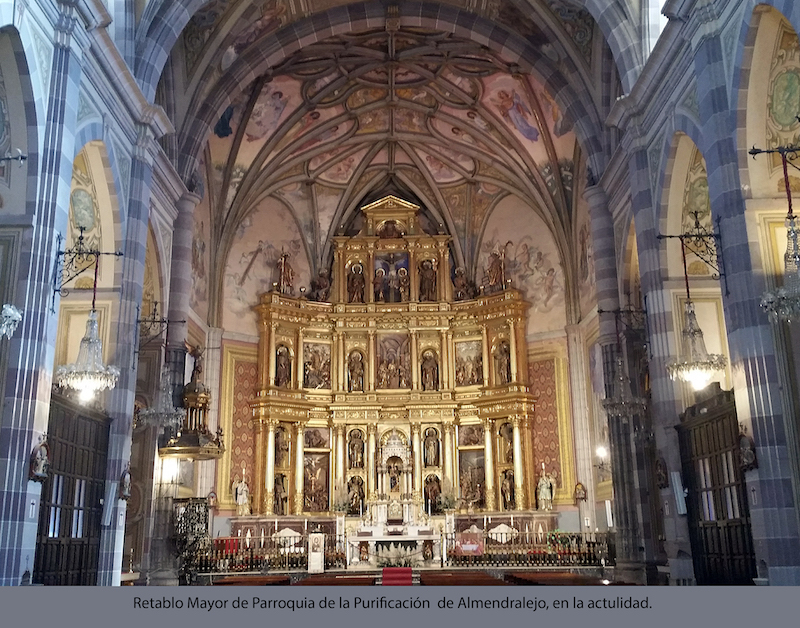Actualmente en la cabecera de la parroquia de Almendralejo se contempla esta reconstrucción de su altar mayor bastante aproximada al original, al que no podrá nunca reemplazar. De él dijo el Marqués de Lozoya “que era lo más grandioso y notable que se ha hecho en España después de la guerra”.