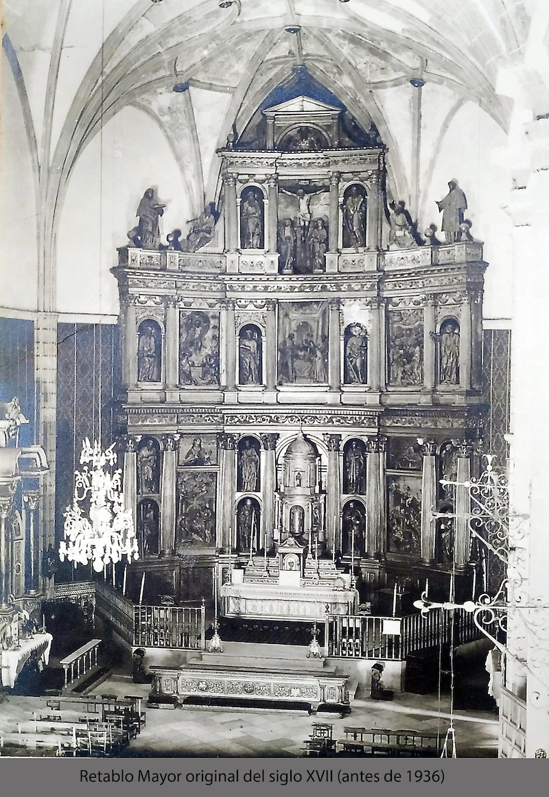 Este gran retablo descrito presidió el templo durante más de 300 años. Al desaparecer en el incendio de 1936, la parroquia presenta un aspecto desolador por eso el párroco Don José Cano Gil y la Junta Reconstrucción del Templo Parroquial promueve sustituir cuanto antes el retablo desaparecido.