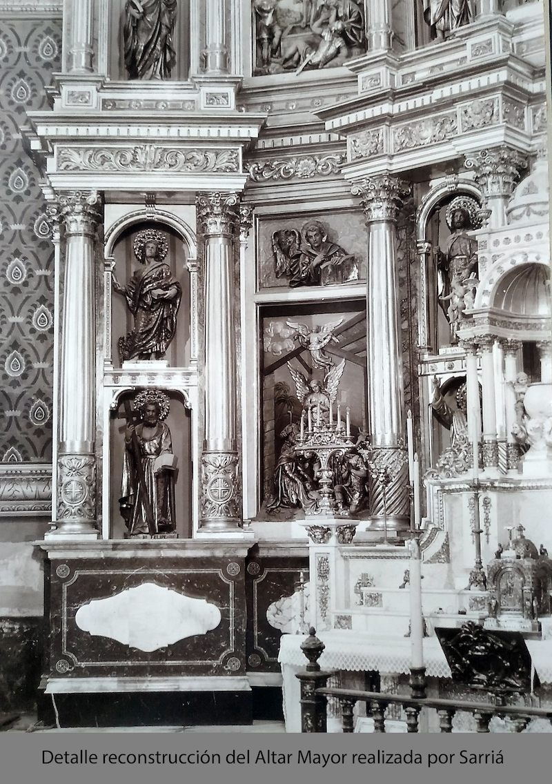 Sinceramente, contemplando este retablo, estimo que la antigua especialidad profesional de talla en la Escuela Salesiana de Sarriá no ha sido suficientemente valorada. En los años 40-60 del pasado siglo en Sarriá se realizaron muchos bienes muebles eclesiásticos que a día de hoy se encuentran emplazados en las diferentes iglesias, capillas, conventos, monasterios… de nuestra geografía y hasta en América. Su labor como escultores imagineros durante la posguerra fue ímproba por todo el país, debido al aumento de la demanda a consecuencia de los destrozos ocasionados por la guerra que trajo la necesidad de reponer este patrimonio religioso perdido. La Escuela de Sarriá creció y se expandió en uno de los fenómenos artísticos más interesantes, sugestivos y poco conocido de la segunda mitad del siglo XX.