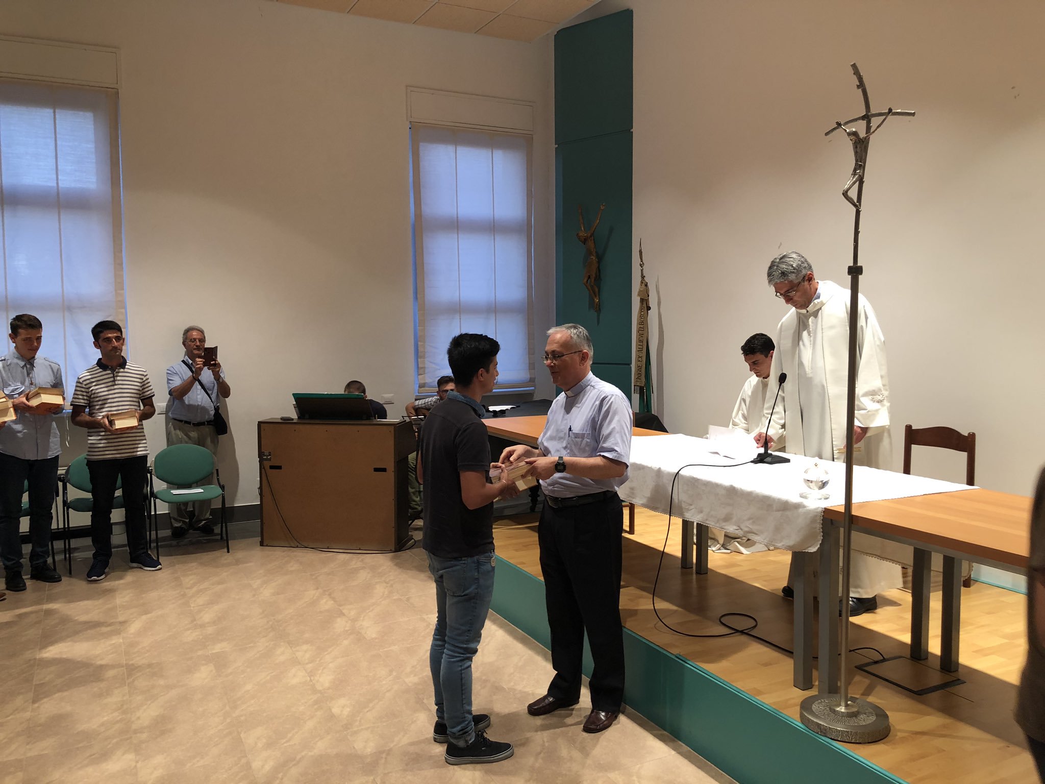 Por otra parte, en la jornada anterior, se llevó a cabo la acogida de los nuevos novicios para el curso 2019-2020, en el noviciado salesiano internacional “San Luis Versiglia” de Genzano di Roma. Allí se incorporan este curso, Mario Martín, que realizó el prenoviciado en la Bartolomé Blanco de Sevilla, junto a Chema García y Luis Valverde (SSM). La celebración consistió en una lectura de la Palabra de Dios y el comentario a las Constituciones salesianas. ·”Comienza un año para continuar madurando su vocación y preparar su profesión como Salesianos de Don Bosco” explica Xabier Camino para quien fue una alegría poder acompañarlos en este momento tan importante de sus vidas.