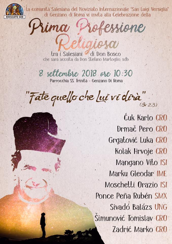 El sábado 8 de septiembre, a las 10:30, tuvo lugar en la Parroquia de la Santísima Trinidad en Genzano di Roma la primera profesión como religiosos salesianos de 11 nuevos miembros en la Congregación. Entre ellos se encontraba Rubén Ponce Peña, perteneciente a la Inspectoría Salesiana María Auxiliadora, que daba este paso tras realizar su año de formación en Italia.