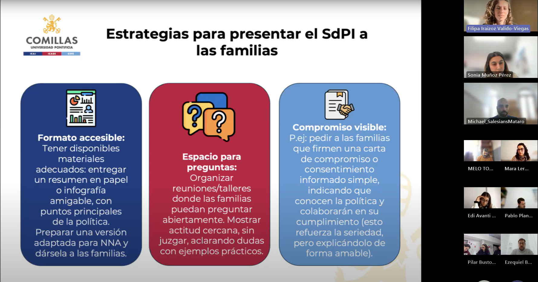 La segunda mesa, realizada en noviembre, profundizó en la participación infantil y familiar, el uso del Mapa de Riesgos y las estrategias para comunicar el SdPI de forma accesible. Las entidades coincidieron en la importancia de involucrar activamente a niños, niñas y adolescentes como agentes de protección, reconociendo que su participación contribuye a mejorar la convivencia y a detectar situaciones de riesgo con mayor anticipación.