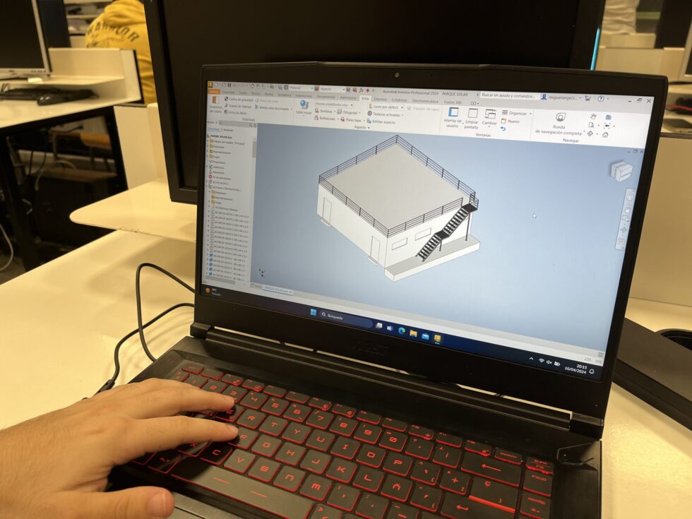 El alumnado del Ciclo Formativo de Grado Superior de diseño en fabricación mecánica han diseñado y construido una escalera y una barandilla metálica, que habilita una superficie de 100m2, para instalar un conjunto de placas solares fotovoltaicas que proveerán de energía limpia y gratuita a los patinetes eléctricos de los alumnos del colegio San José artesano de Elche.