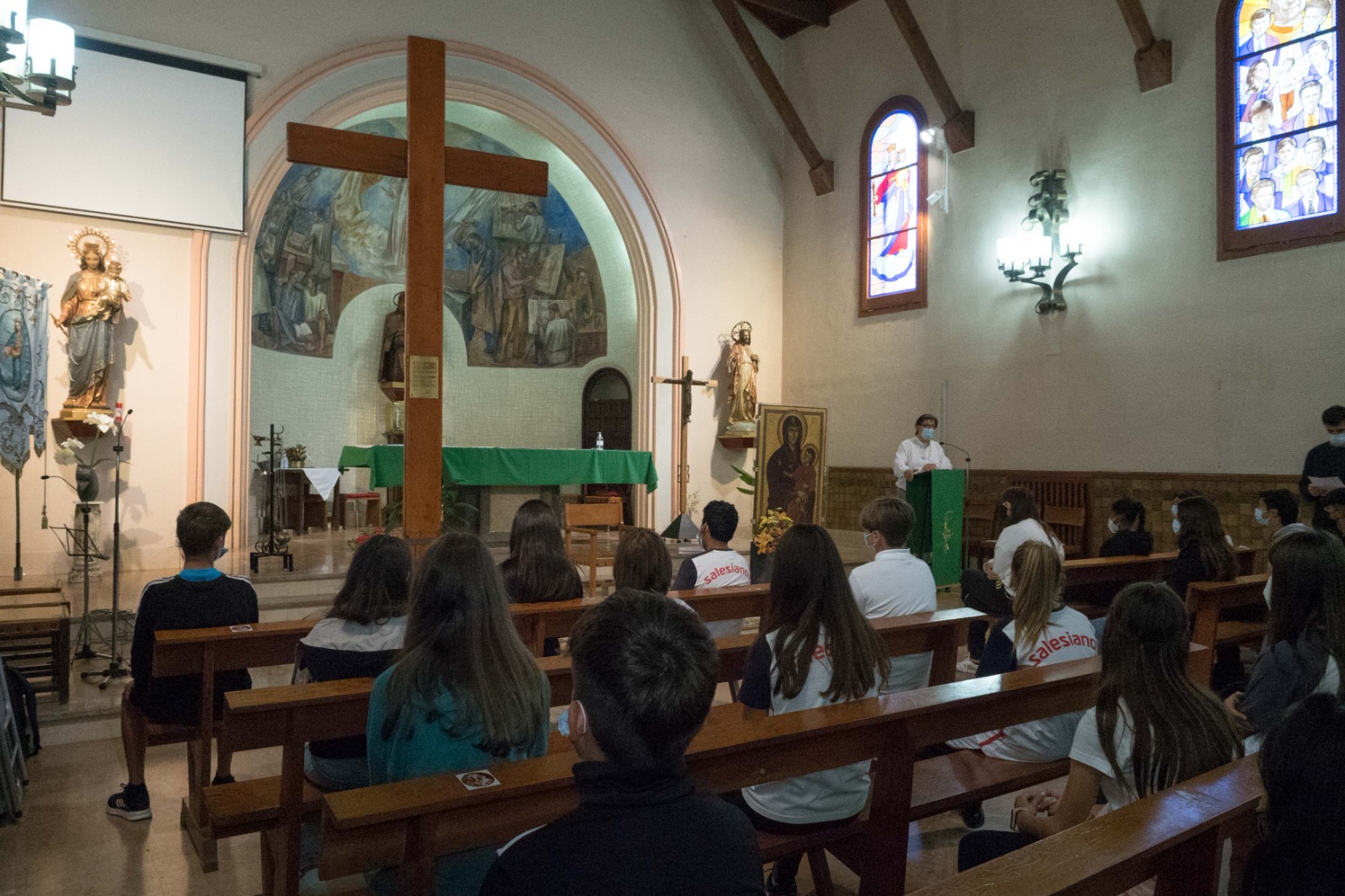Varias casas salesianas acogieron los símbolos que San Juan Pablo II confió a los jóvenes, especialmente en Salesianos Sevilla-Trinidad, con la celebración de una Eucaristía presidida por Jordi Lleixá, delegado de Pastoral Juvenil de la Inspectoría María Auxiliadora (SMX) y con gran participación de jóvenes de los ambientes salesianos, o en Salesianos Huesca, Salesianos Monzón o Salesianos Málaga.