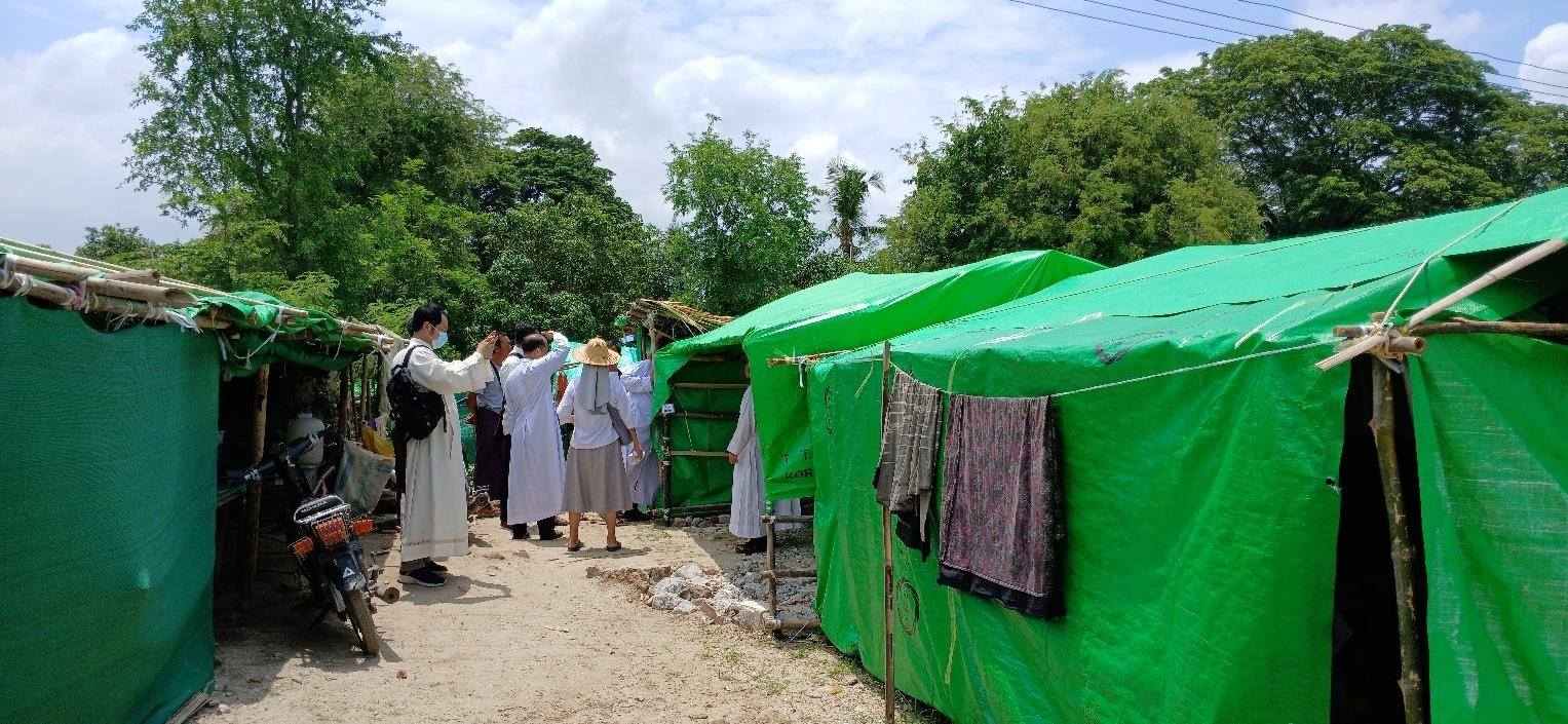 Actualmente, entre 4.000 y 5.000 personas —alrededor de 1.600 familias— viven en un campamento improvisado cerca de un monasterio budista. Sus hogares fueron destruidos por el terremoto y, desde entonces, sobreviven en pequeñas chozas, sin acceso adecuado a servicios básicos. La situación se agrava por el contexto político, que dificulta el acceso a recursos y limita la llegada de ayuda humanitaria.