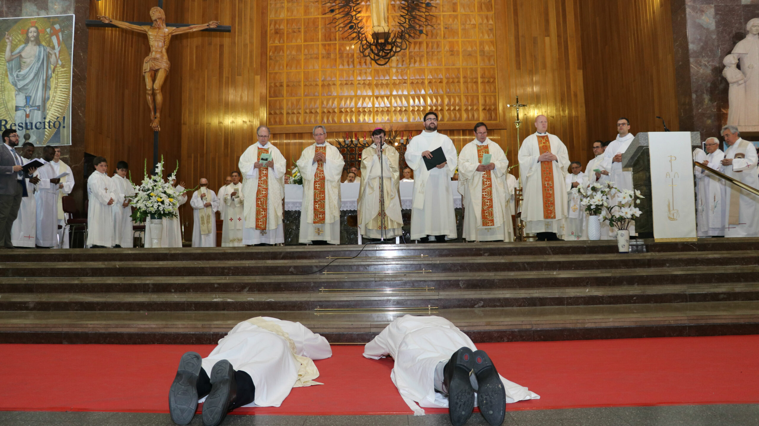 Presidió la celebración Monseñor José Cobo, obispo auxiliar de la Archidiócesis de Madrid, quien en su homilía destacó dos puntos importantes. Primero, en referencia a los ordenandos: «Rubén y Ramón, hoy nos decís con vuestra vida, a todo los que estamos aquí, que vosotros sois testigos de la felicidad«. Y después, dirigiéndose a toda la Asamblea, pero sobre todo a los más jóvenes: «Queridos hermanos, ser felices es posible; no hay más que mirarse en ellos dos (el nuevo presbítero y el nuevo diácono). Ver que Cristo actúa es posible, es posible si aceptamos los regalos de Dios como lo han hecho Rubén y Ramón».