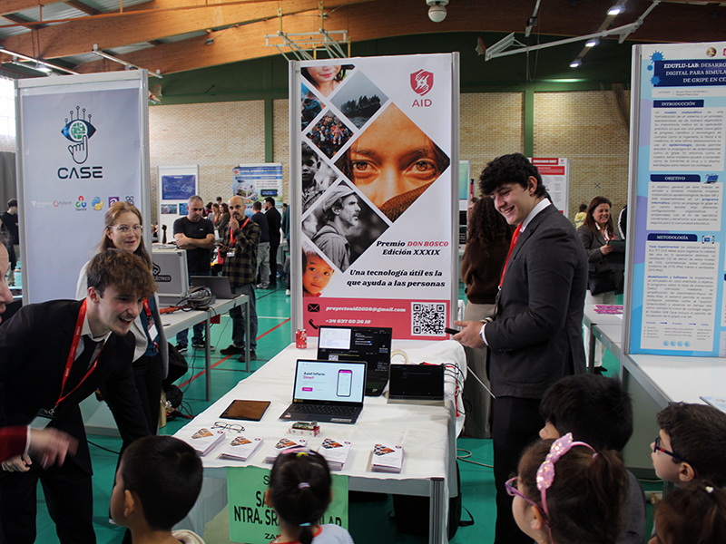 El pabellón deportivo del Colegio Salesiano de Zaragoza ha acogido la exposición de proyectos de la 39ª edición del Premio Nacional Don Bosco, un escaparate de innovación educativa, científica y tecnológica en el que estudiantes de distintos puntos de España presentan soluciones a retos reales de la sociedad.