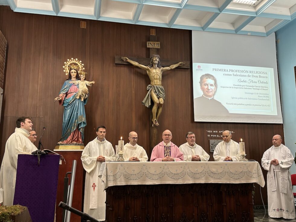 En el marco de la eucaristía, que presidió el Inspector Fernando García, Andrés emitió sus primeros votos como salesiano de Don Bosco. Además de por familiares, estuvo acompañado por un grupo de salesianos de la Inspectoría SSM, jóvenes del centro juvenil de Carabanchel, y otros salesianos compañeros de noviciado que vinieron desde Italia. Entre ellos, Enrico Ponte, el maestro de novicios que le ha acompañado en este proceso formativo.