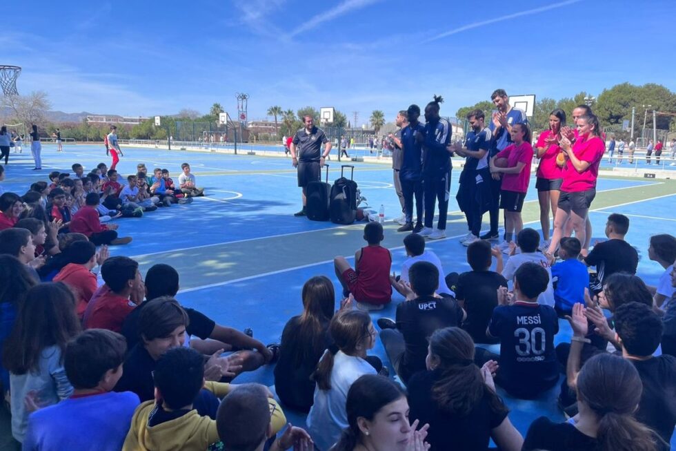 Participaron 350 alumnos de Primaria y Secundaria del colegio salesiano junto a jugadores, jugadoras y técnicos del club de basket cartagenero.