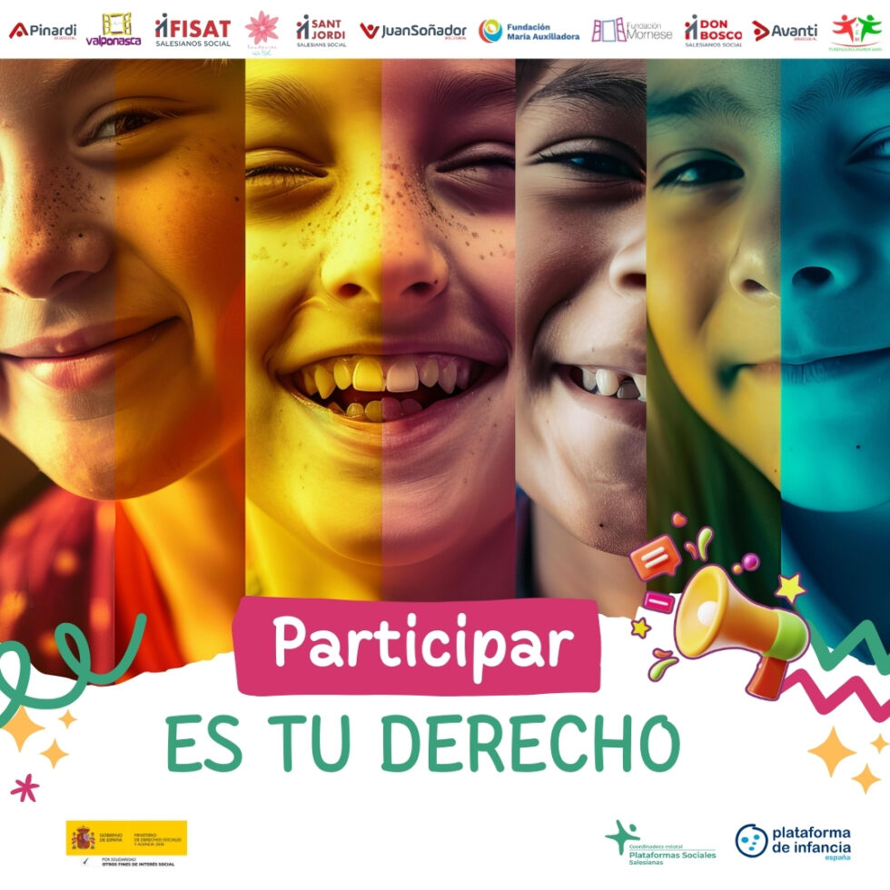 Les Plataformes Socials Salesianes juntament amb la Plataforma per a la Infància d’Espanya han llançat la iniciativa “Participar es tu derecho”, buscant visibilitzar la importància de la participació infantil i juvenil en la presa de decisions que afecten les seves vides i ressaltant que el dret dels nens i nenes a participar és fonamental per construir un futur inclusiu i democràtic.