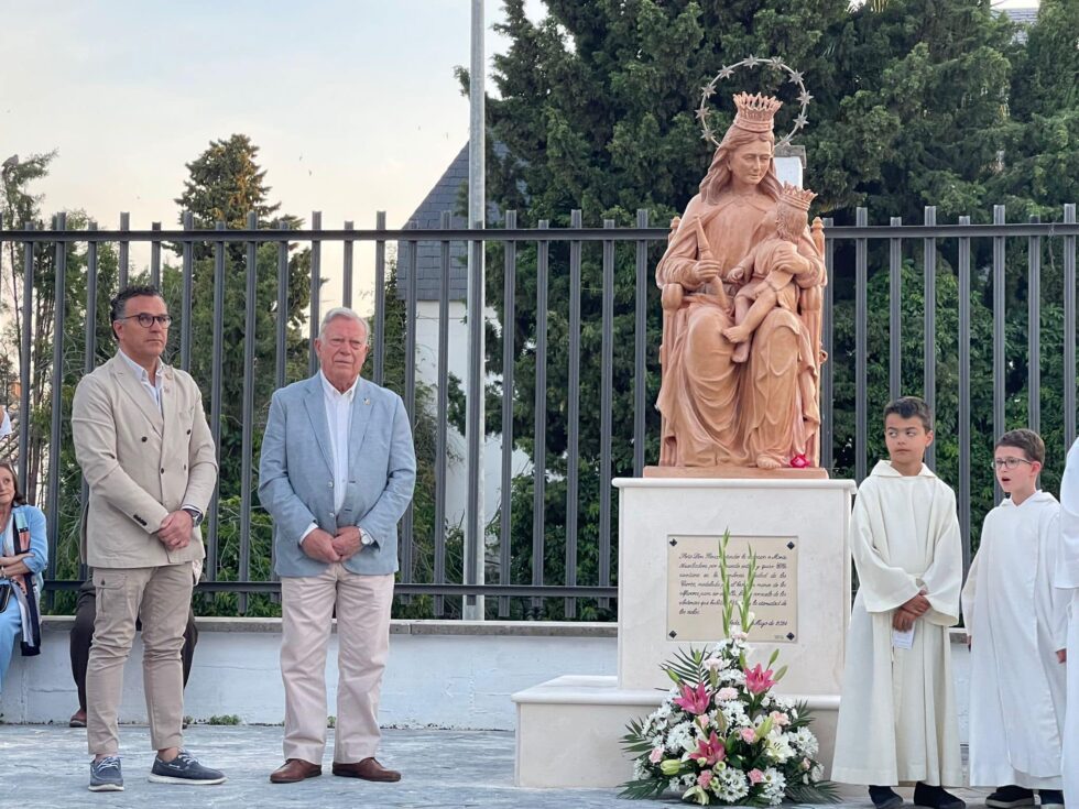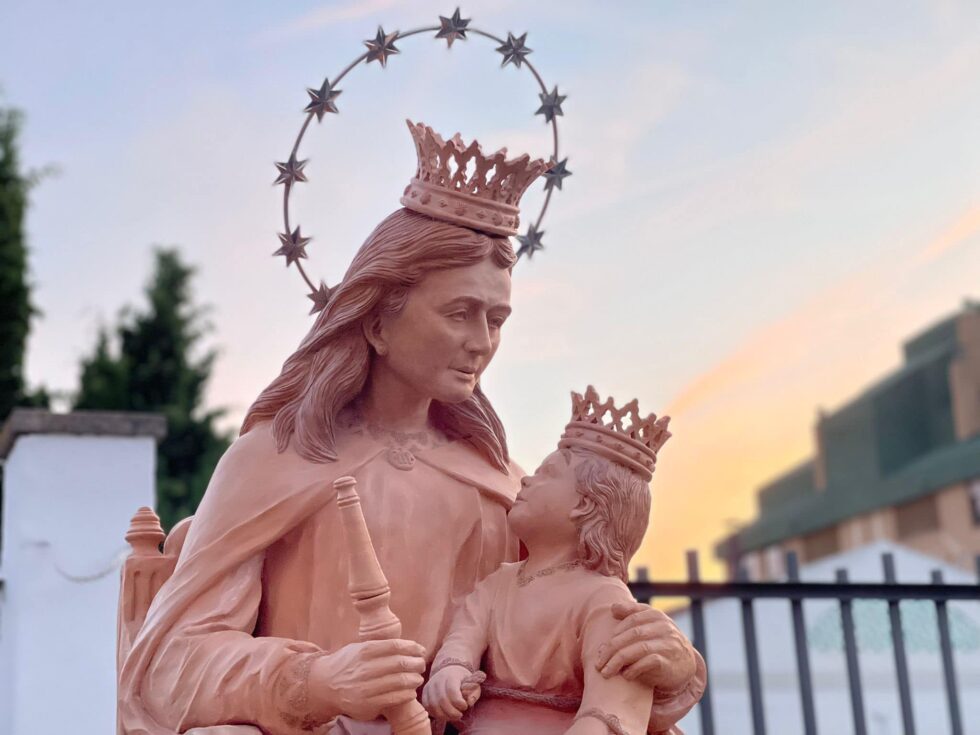 La imagen, situada en el patio de su mismo nombre, muestra cómo María mira a su hijo sentada en un trono en donde se pueden ver tres de los sueños de Don Bosco. “Enhorabuena a la Alfarería Paco Tito por esta preciosa imagen y a la empresa de Golumarc por la construcción del precioso pedestal”, compartían desde la presencia salesiana.