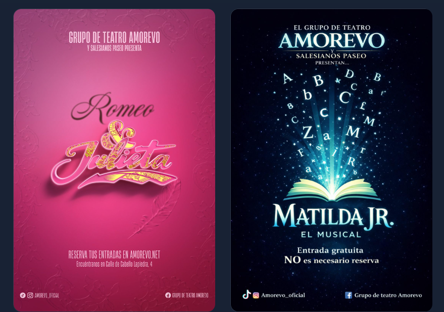 Uno de los grupos de teatro salesiano con gran trayectoria, Amorevo, ha estrenado los días 11 y 12 de abril sus obras musicales para esta temporada. Romeo y Julieta y Matilda Jr. el Musical.