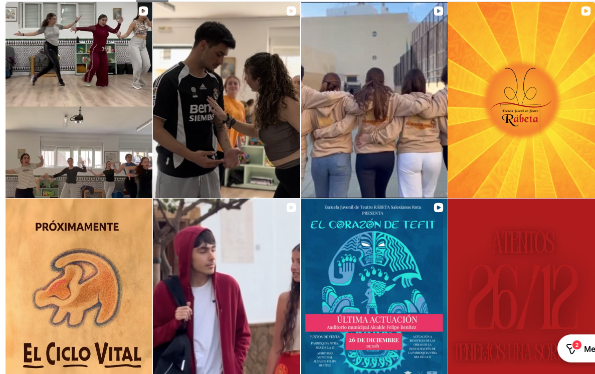 La Escuela Juvenil de Teatro Rábeta, vinculada a los Salesianos, ha consolidado un grupo estable de jóvenes que se mantiene activo durante todo el año, participando en diversas iniciativas culturales dentro de la localidad. Sin embargo, su actividad principal gira en torno a la puesta en escena de un musical anual que cada verano representa con notable éxito en el Colegio Salesianos. Entre sus producciones más destacadas figuran montajes de gran formato como El Rey León, Tarzán, Vaiana o Encanto, entre otros, que han contado con una excelente acogida por parte del público.