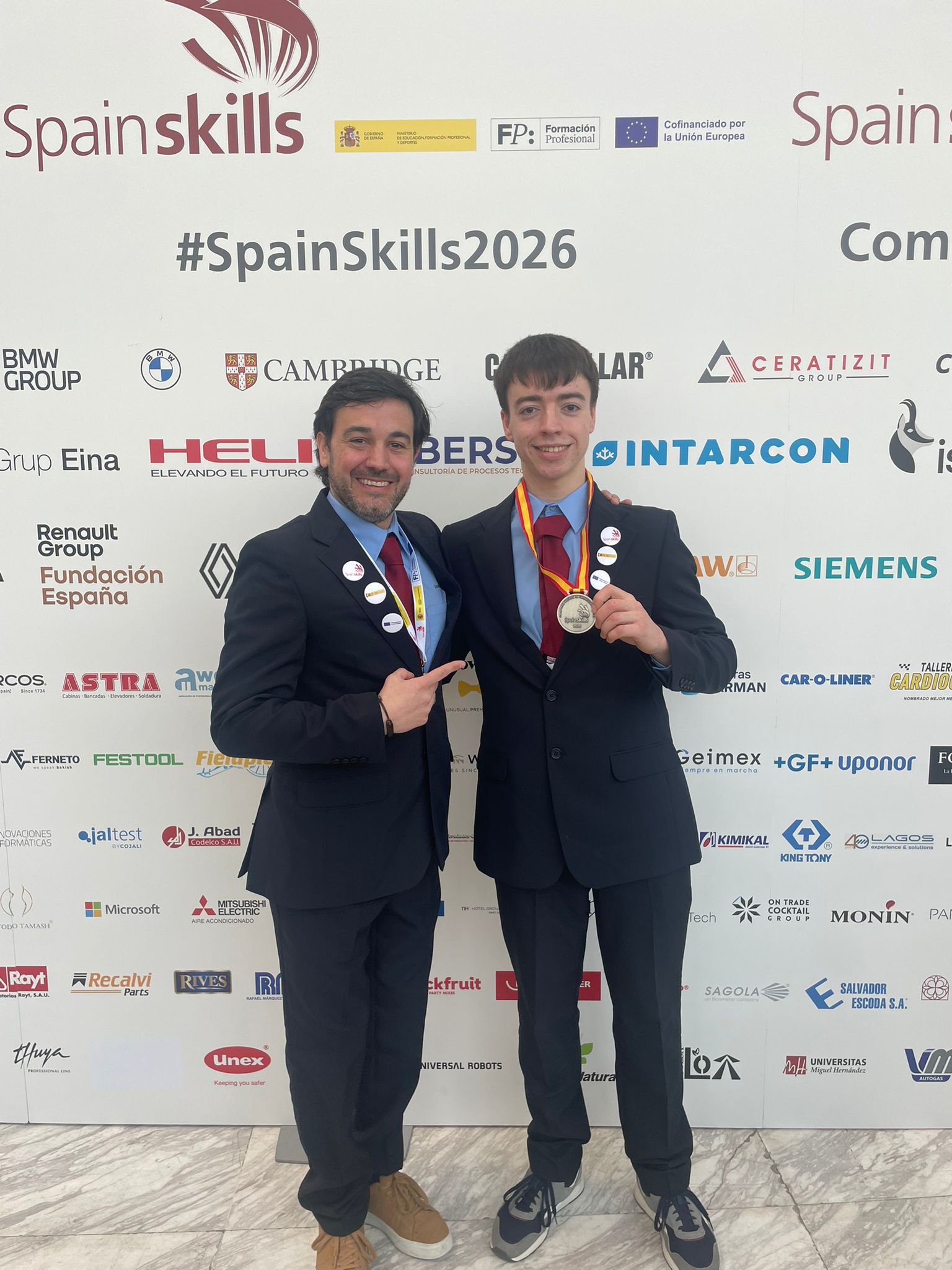 Hasta IFEMA de Madrid se desplazaron, además de los estudiantes de Zaragoza, Burgos y Aranjuez, alumnos de Salesianos Los Boscos de Logroño: Uxue Abajo y Mateo Martínez de Grado Superior de Fabricación Mecánica y el equipo de Salesianos Carabanchel de Madrid en la modalidad de mecatrónica formado por Adrián Dorado y Aitor Araujo y Marcos Fontán Blanco y Brais Castro Pardo, del colegio A Mercé -Salesianos Cambados