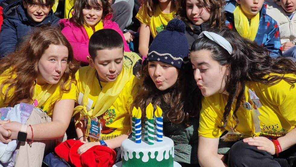 En total 155 niños y animadores soplaron las velas de una tarta a la vez que profundizaron mediante el juego y la convivencia en los elementos de la propia identidad de este movimiento que agrupa mayoritariamente a niños y niñas de 3º a 6º de Primaria.