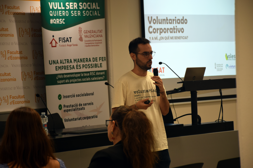 Este encuentro está financiado por la Generalitat Valenciana, a través de la Conselleria de Participación, Transparencia, Cooperación y Calidad Democrática. La Facultad de Economía de la Universitat de València acogió la jornada que volvió al formato presencial después de las últimas tres ediciones online. Juan Ángel Poyatos, fundador de Voluntare, fue el encargado de la ponencia principal donde radiografió el estado del “Voluntariado Corporativo en España”.